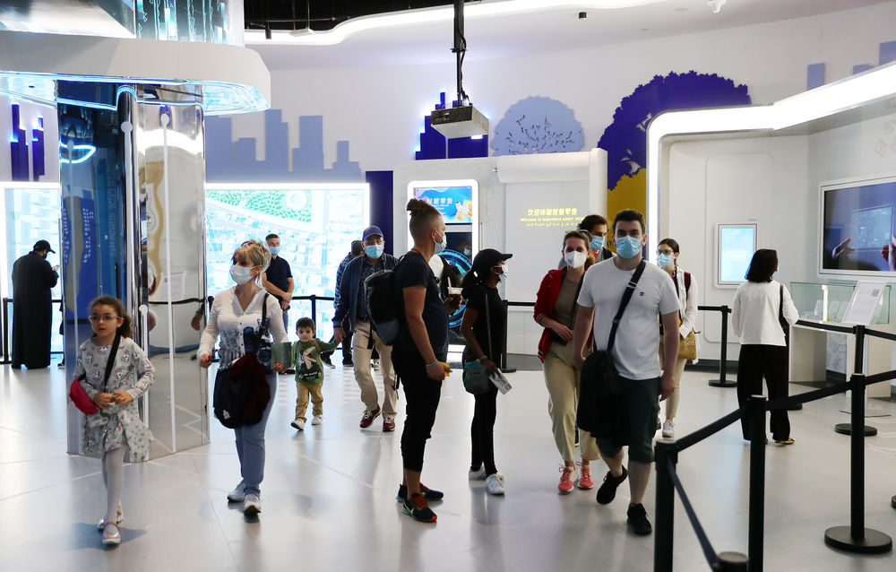 ↑1月11日,游客在迪拜世博会中国国家馆内参观。