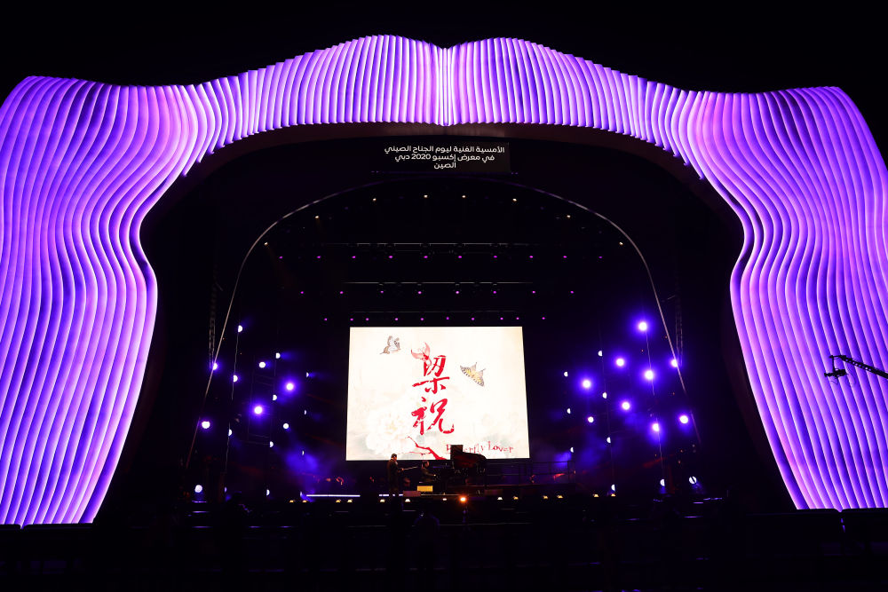 ↑这是1月10日在迪拜世博会拍摄的中国国家馆日文艺晚会演出现场。