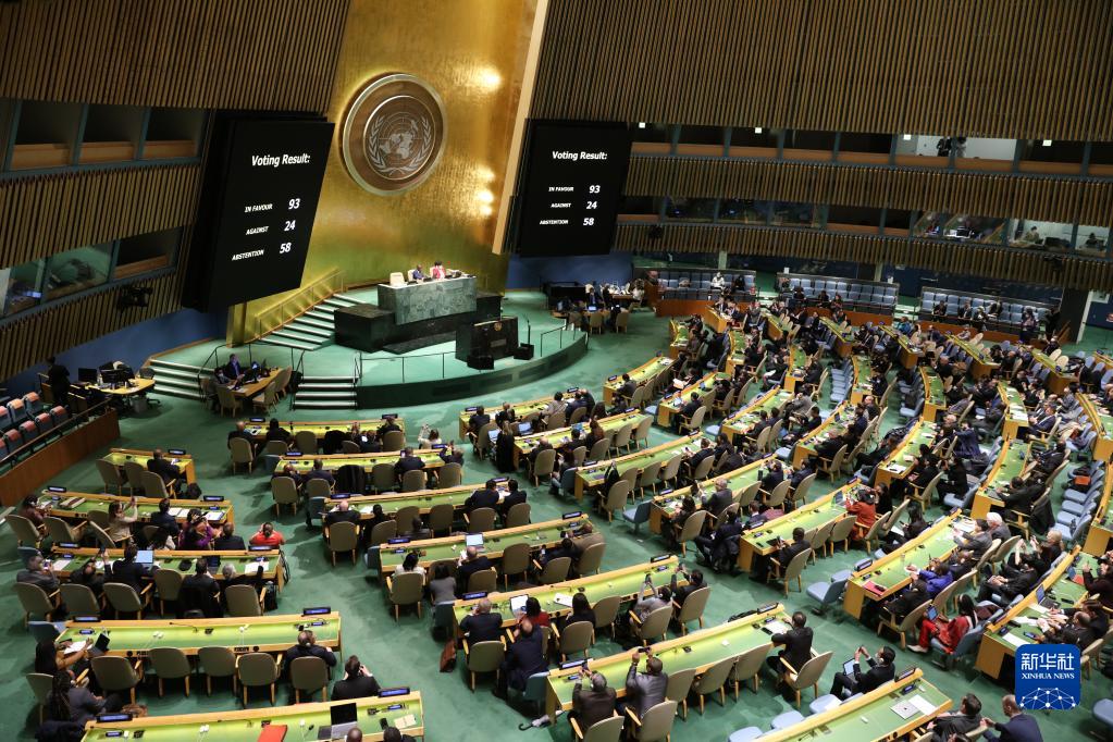 这是4月7日在纽约联合国总部拍摄的联合国大会乌克兰问题紧急特别会议的投票结果。