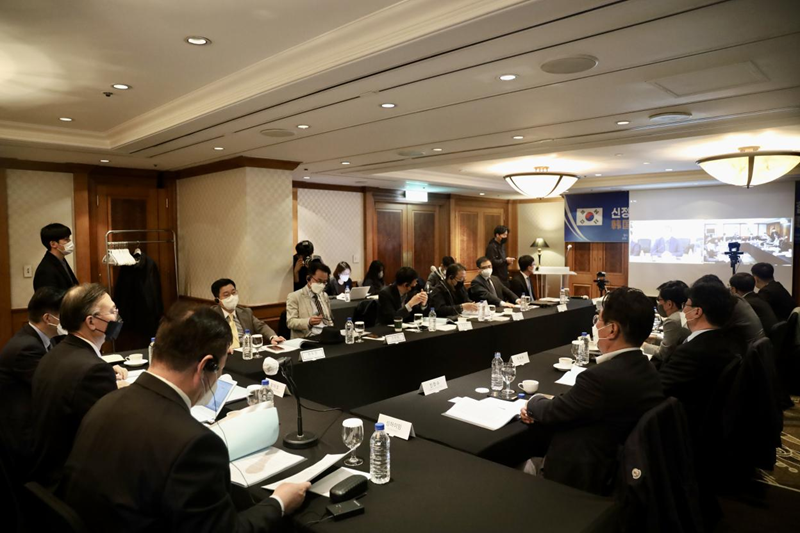 4月7日,与会嘉宾在“韩国新政府执政后的中韩合作与愿景”中韩专家研讨会上就中韩关系等议题进行讨论。(图片由中国驻韩国大使馆提供)