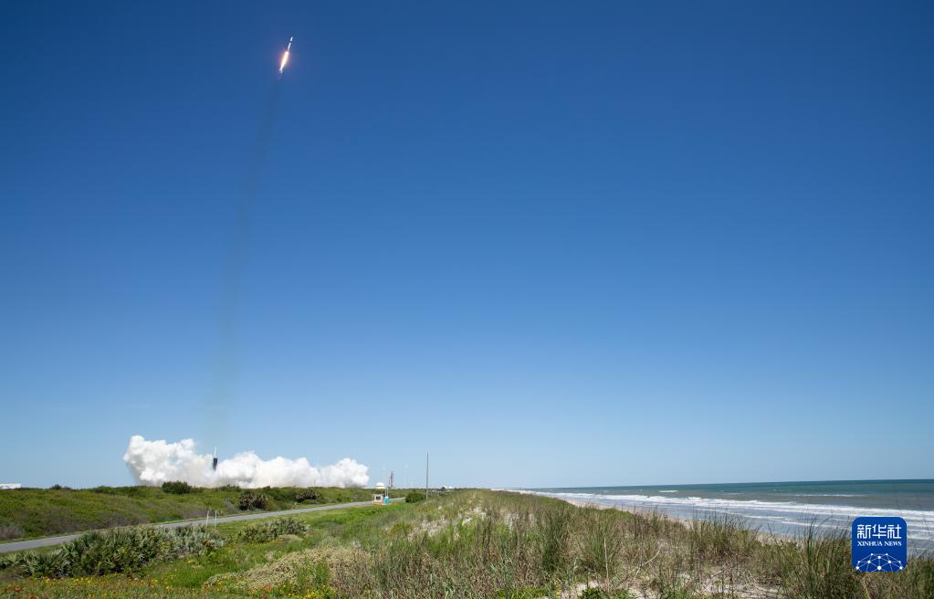 4月8日,“龙”飞船搭乘“猎鹰9”号火箭从美国佛罗里达州肯尼迪航天中心发射升空。