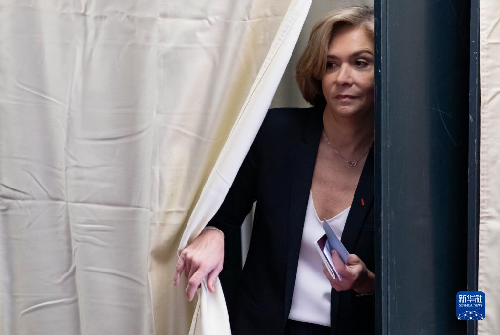 4月10日,法国右翼政党共和党候选人瓦莱丽·佩克雷斯在巴黎近郊的韦利济-维拉库布莱一处投票站投票。