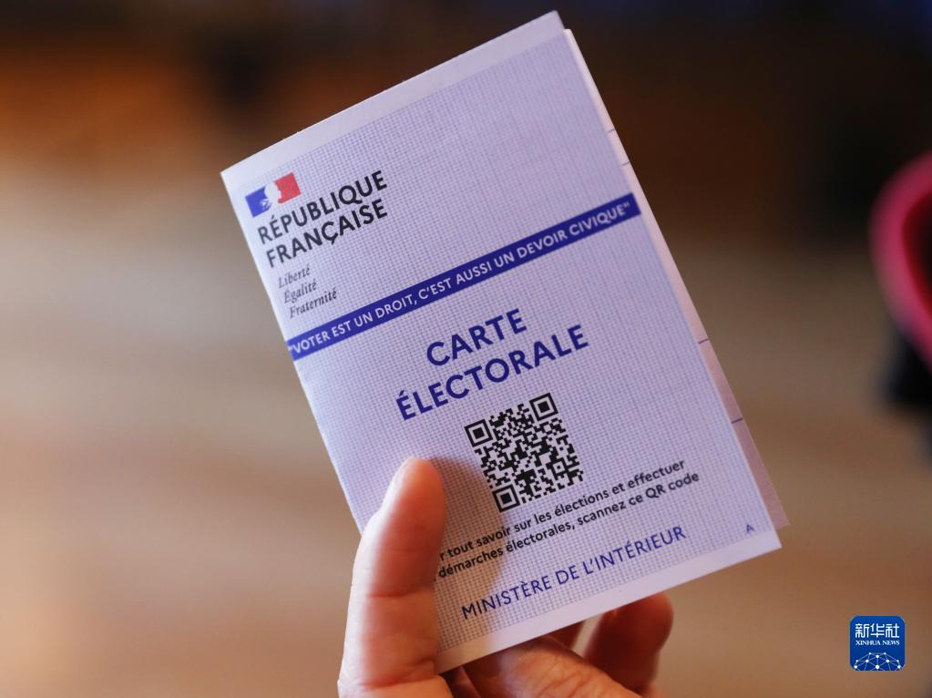 这是4月10日在法国巴黎郊区的克里希市一家投票站拍摄的选民证。