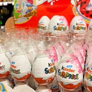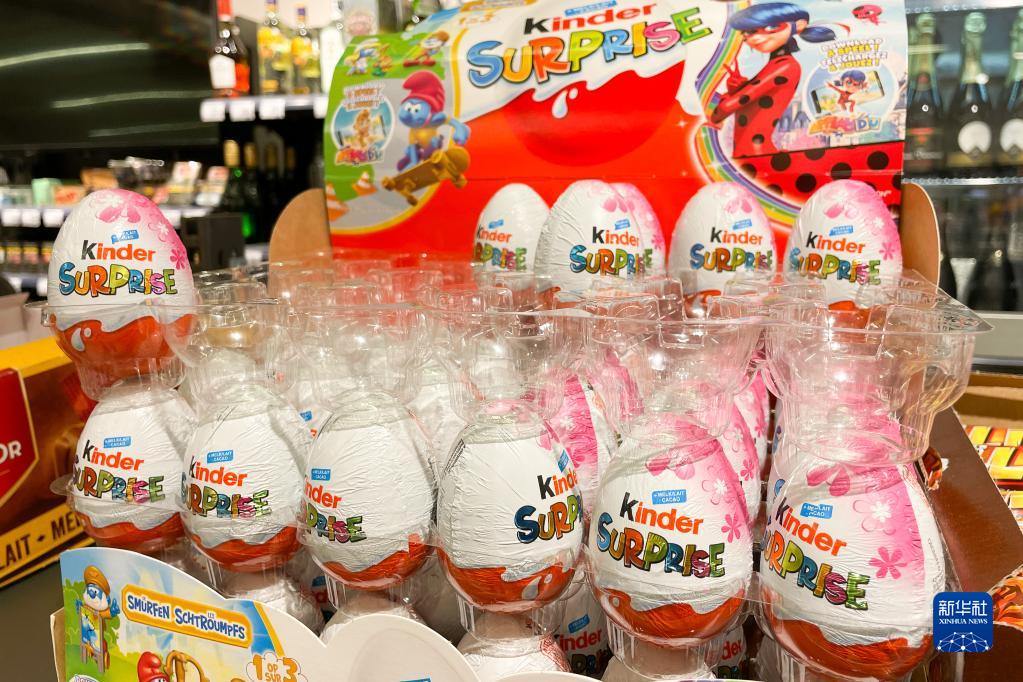这是4月6日在比利时布鲁塞尔一家超市拍摄的费列罗旗下巧克力蛋产品。