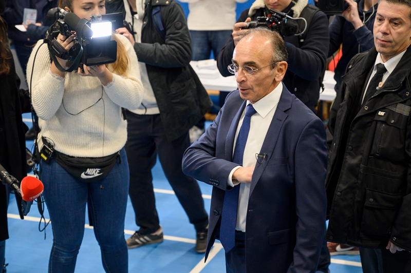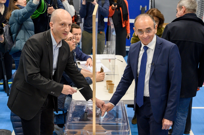 ↑4月10日,法国极右翼政党光复党候选人埃里克·泽穆尔在巴黎的一处投票站投票。新华社发(朱利安·马蒂亚摄)