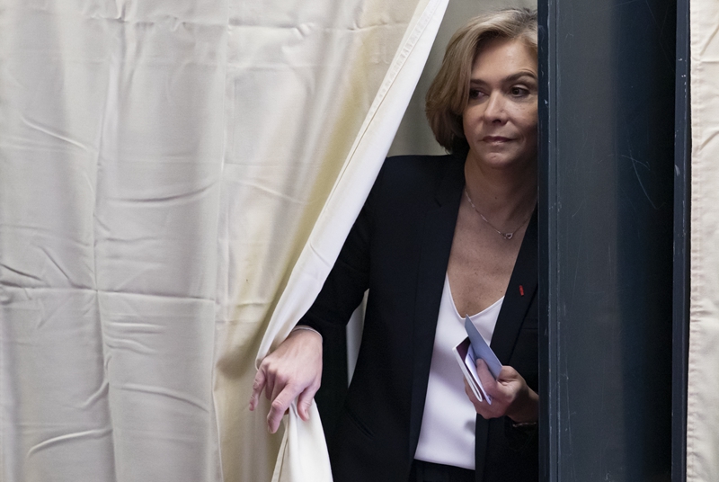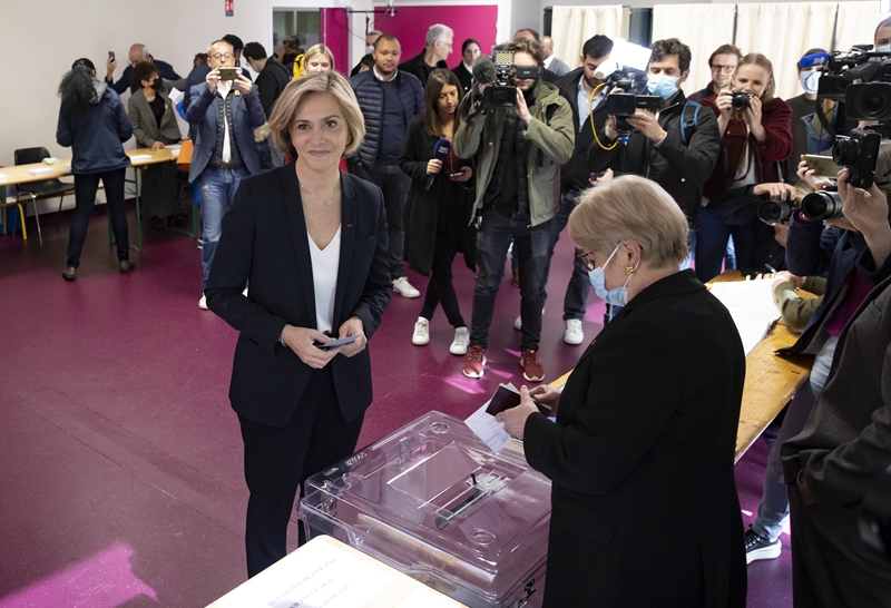 ↑4月10日,法国右翼政党共和党候选人瓦莱丽·佩克雷斯在巴黎近郊的韦利济-维拉库布莱一处投票站投票。新华社发(肖恩·洛朗摄)