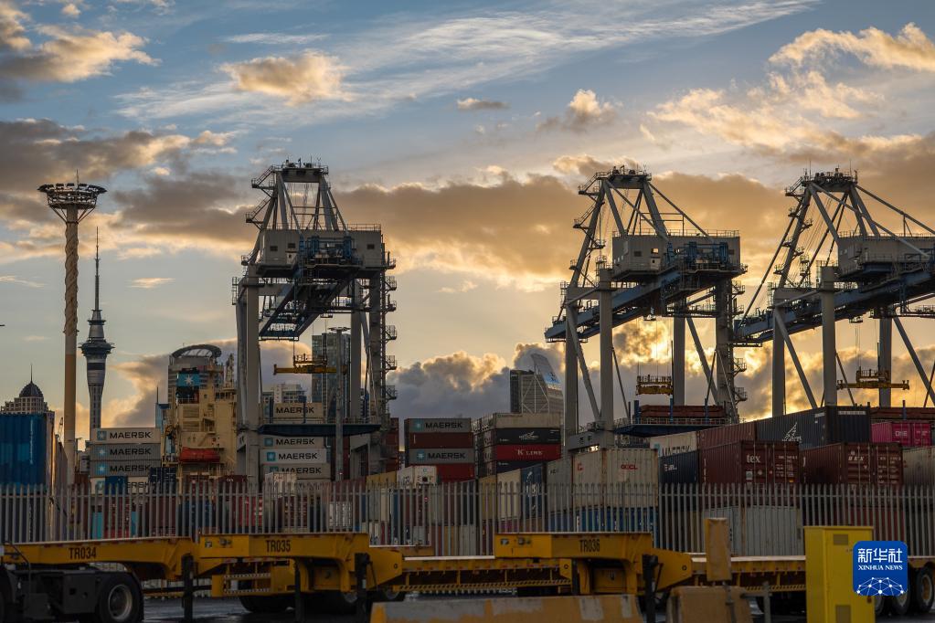 图为3月23日拍摄的新西兰奥克兰集装箱码头。