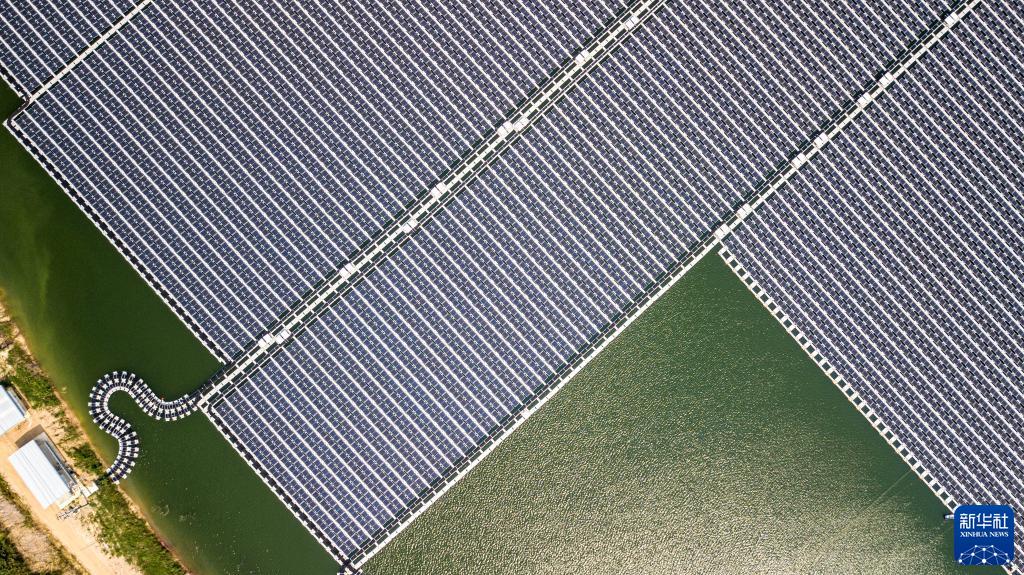 这是4月11日在泰国罗勇府拍摄的水上漂浮式光伏电站(无人机照片)。