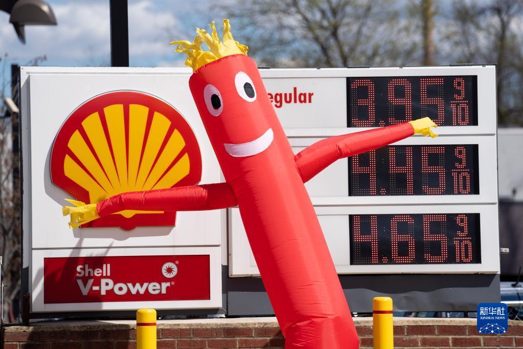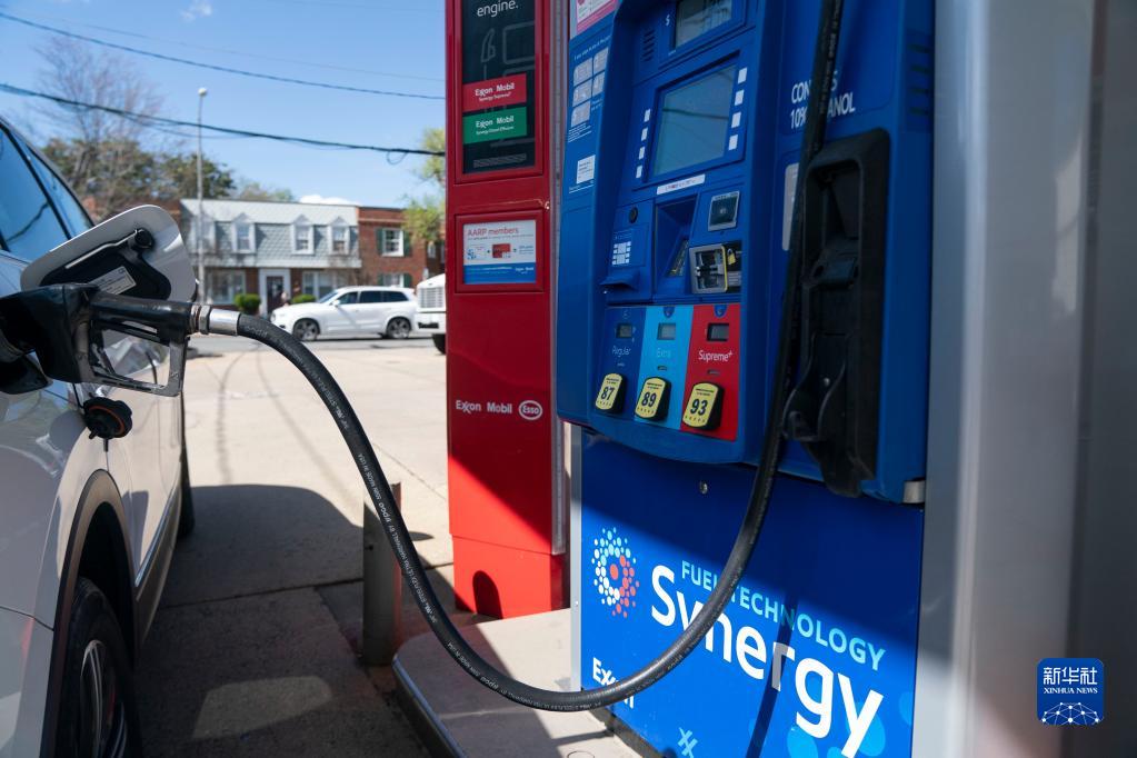 4月12日,一辆汽车在美国弗吉尼亚州阿灵顿的一处加油站加油。新华社记者刘杰摄