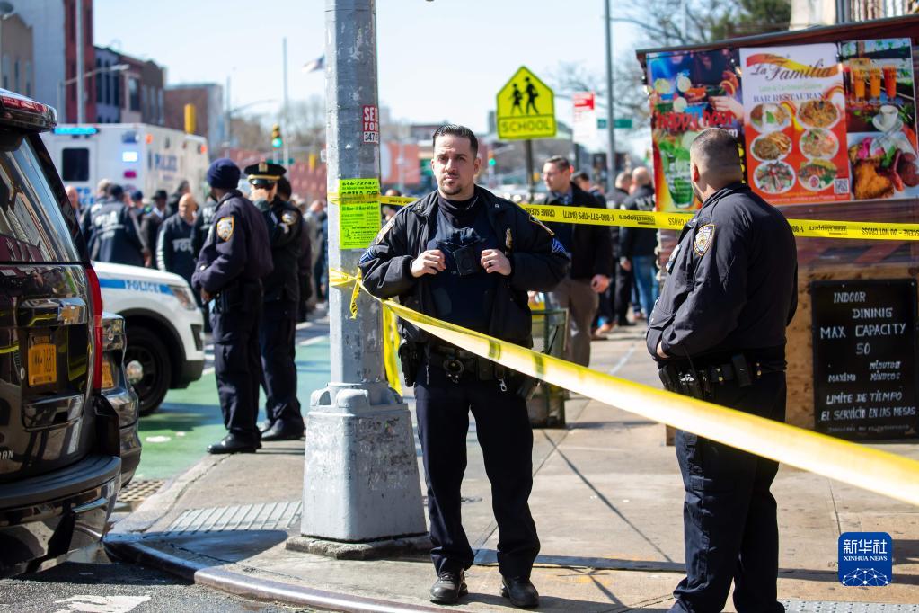 4月12日,警察在美国纽约发生枪击的地铁站附近警戒。