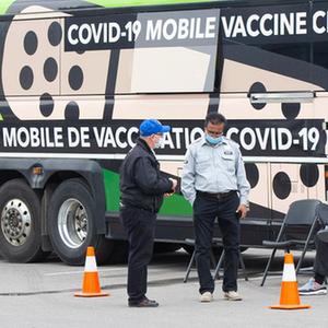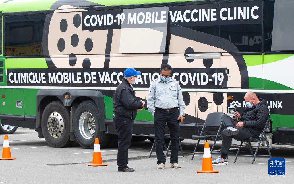 这是4月13日在加拿大多伦多拍摄的一处流动新冠疫苗接种点。
