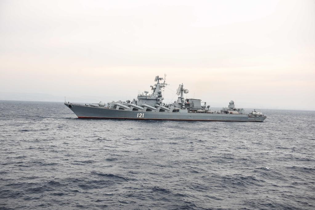 “莫斯科”号巡洋舰有舰员510人,配备16枚“玄武岩”反舰导弹以及防空和反潜武器,曾参加俄罗斯在叙利亚军事行动,为俄军机场提供保护。