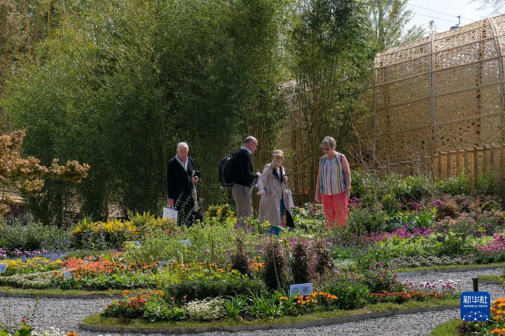 4月14日,游客参观荷兰阿尔梅勒世界园艺博览会“中国竹园”展馆。