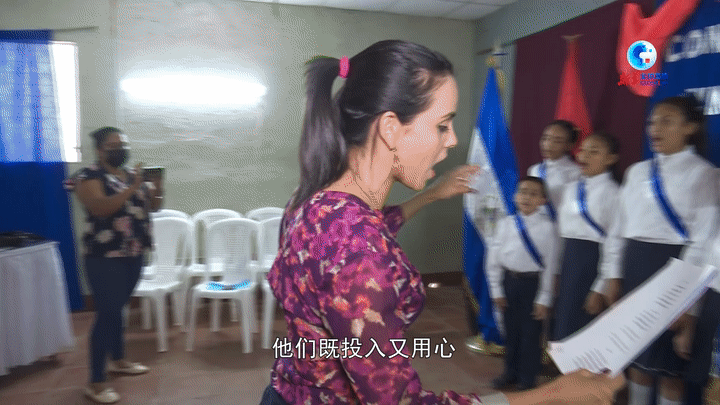 尼加拉瓜教育部学生合唱团和管弦乐团学术负责人埃丽卡·赛加斯在此次中文歌学唱过程中扮演了合唱团指挥的角色,她对孩子们的学唱进度之快感到惊讶。
