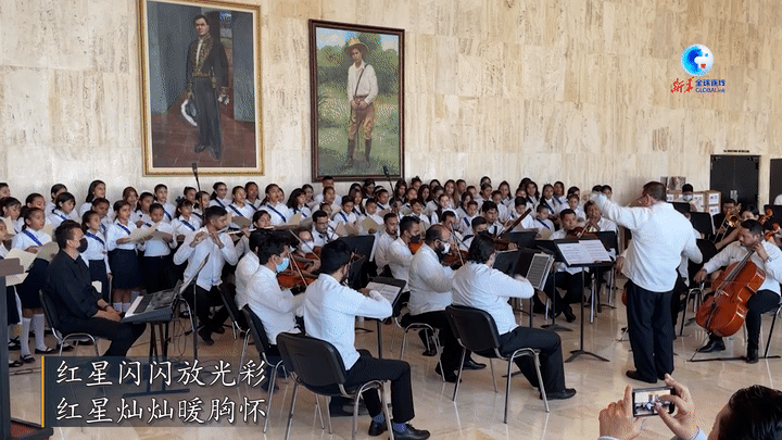 由80名尼加拉瓜小学生组成的国家剧院儿童合唱团,在交响乐队的伴奏下用中文演唱了《红星闪闪》《歌唱祖国》这两首脍炙人口、经久不衰的中国歌曲。对于中文“零基础”的孩子们来说,在短短一周时间内学唱中文歌并登台演出,无疑是一场挑战。