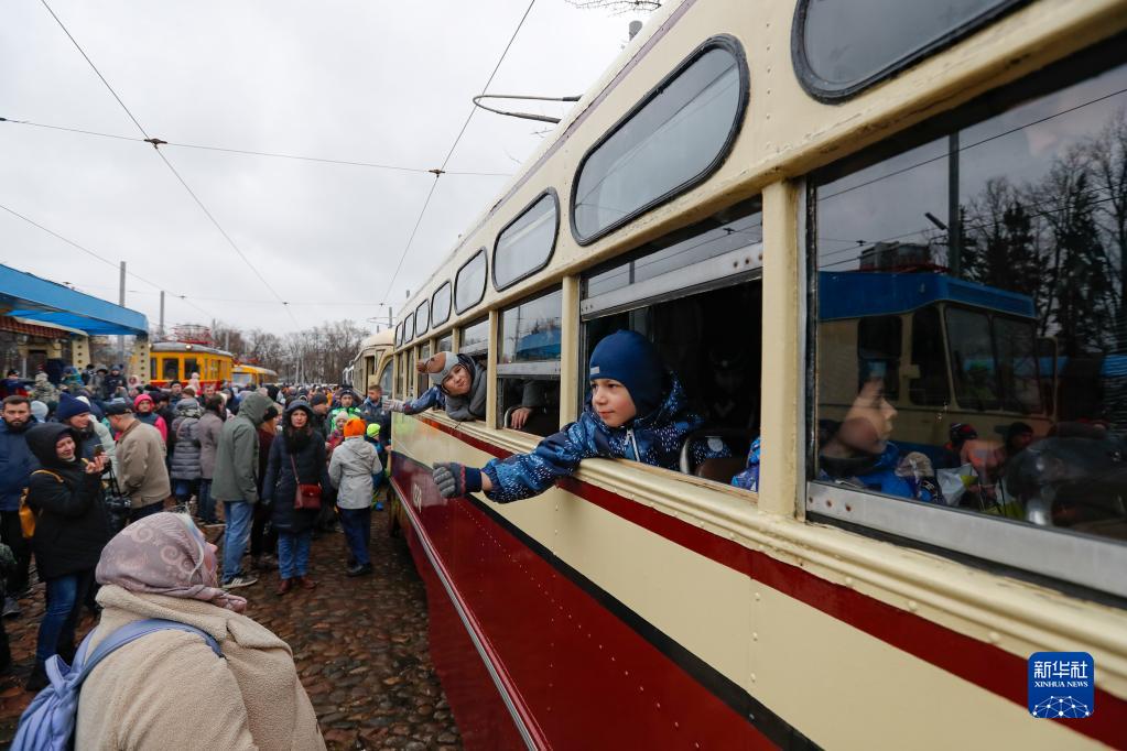 当日,莫斯科举行有轨电车游行活动,纪念有轨电车在莫斯科运行123周年。
