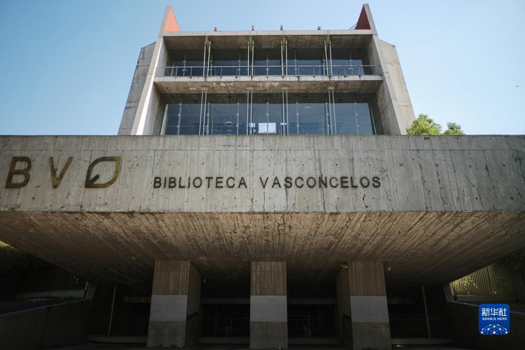 这是4月18日在墨西哥首都墨西哥城拍摄的巴斯孔塞洛斯图书馆外景。