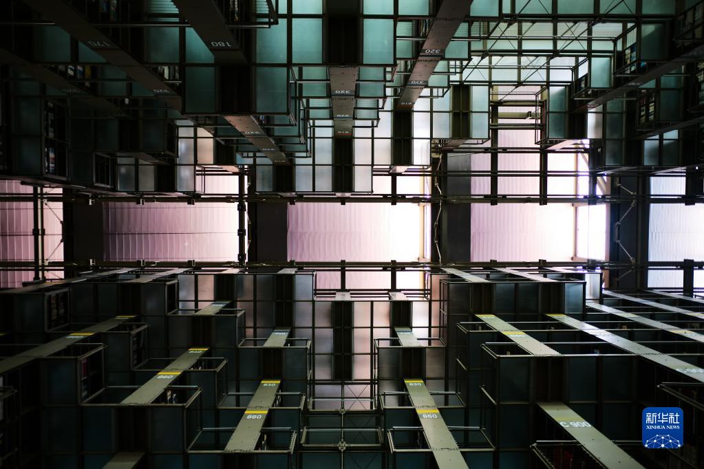 这是4月18日在墨西哥首都墨西哥城拍摄的巴斯孔塞洛斯图书馆的书架。