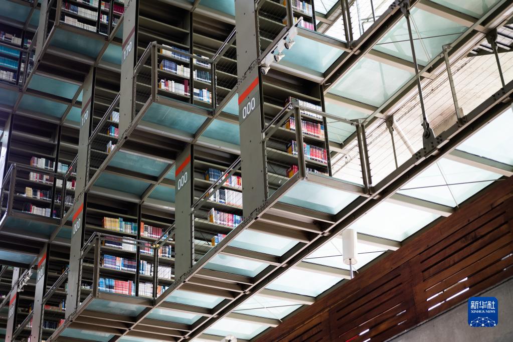 这是4月18日在墨西哥首都墨西哥城拍摄的巴斯孔塞洛斯图书馆的书架。