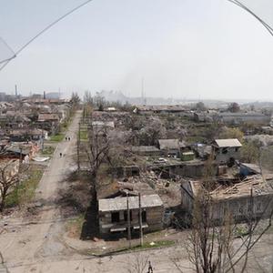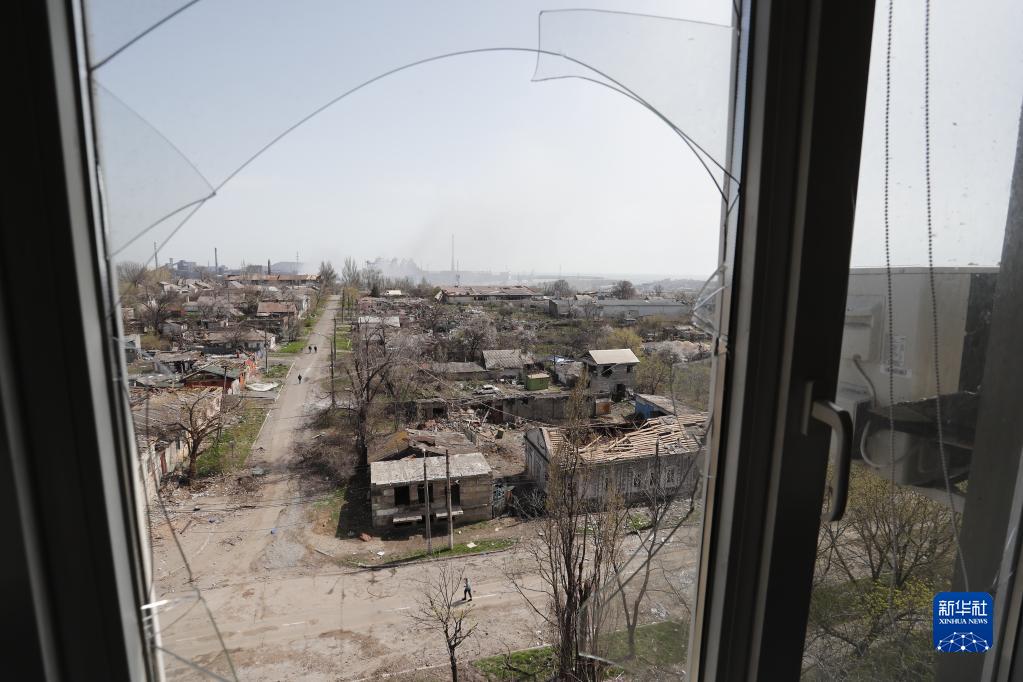这是4月18日在马里乌波尔拍摄的被损坏的建筑。