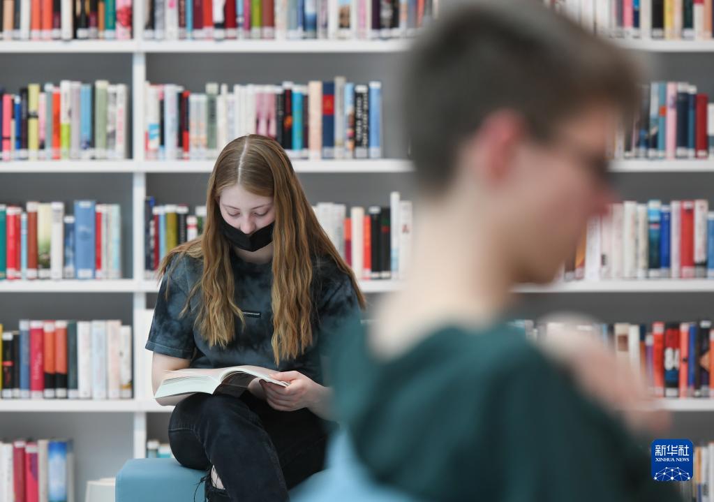 4月19日,人们在德国斯图加特市立图书馆内阅读。