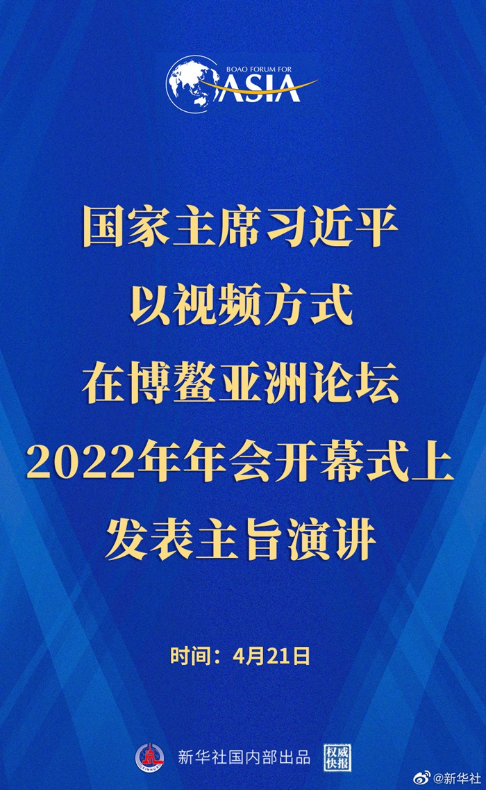 博鳌亚洲论坛2022年年会开幕式4月21日上午在海南博鳌举行,国家主席习近平以视频方式发表主旨演讲。