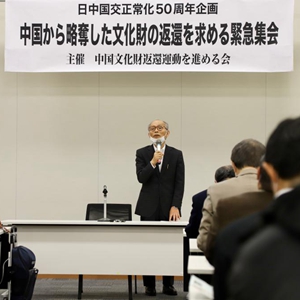 今年是中日邦交正常化50周年,也是日本战败77周年。“中国文物返还运动推进会”联合代表、日本山口大学名誉教授纐缬厚在集会上说:“日本(发动侵华战争)使中国人民遭受深重灾难,我们无法让无辜逝去的生命死而复生,但是可以归还从中国掠夺的文物。我们发起中国文物返还运动启动集会,希望通过返还文物实现‘历史和解’进而推动两国关系发展。”