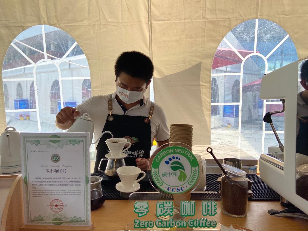 这款咖啡来自海南岛中部琼中黎族苗族自治县黎母山,实现了“从种子到杯子”的咖啡全产业链绿色低碳生产。海南农垦热作产业集团有限公司营销总监赵鹤楠向记者介绍:“咖啡在种植环节不使用农药化肥,采摘环节不使用机械工具,纯手工采摘,咖啡豆加工全程使用‘绿色’电力,最后包装环节采用‘绿色’材料,纸杯都是可降解材质。”