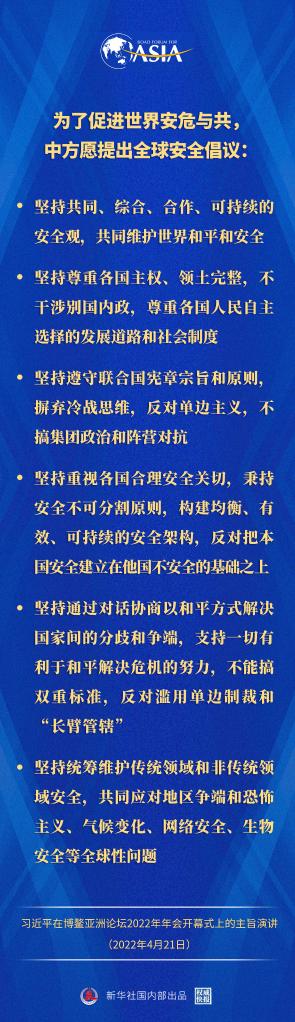 去年9月,面对疫情给全球发展带来的严重冲击,习近平主席在第七十六届联合国大会上提出全球发展倡议;此时此刻,面对新的形势,习近平主席又在博鳌亚洲论坛2022年年会上提出全球安全倡议。