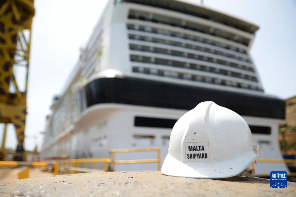 4月22日,在马耳他瓦莱塔,一艘大型邮轮在6号干船坞进行维修。