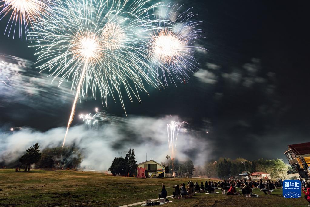 当日,“绝景花火”烟花大会在日本山梨县南都留郡鸣泽村举行。约10000发烟花绽放在富士山脚下,为观众带来绝美体验。
