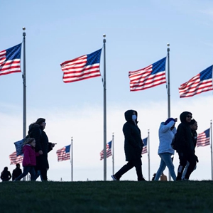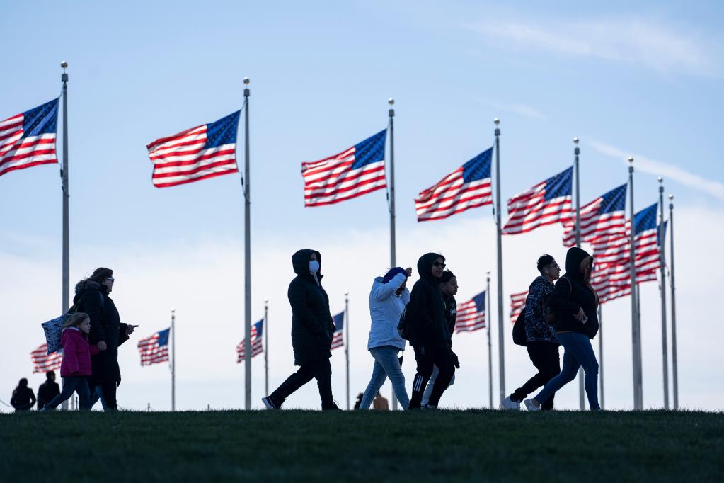3月29日,行人走在美国首都华盛顿的国家广场。(新华社记者刘杰 摄)