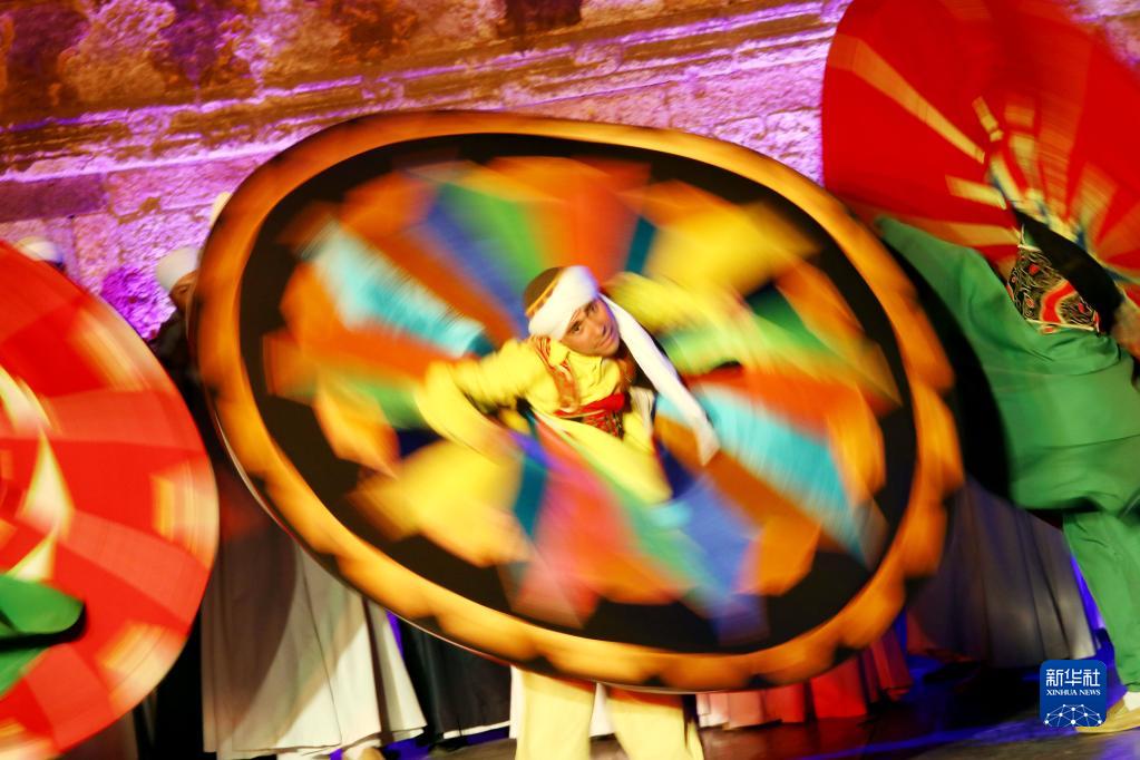 4月23日,舞者在埃及首都开罗的固丽宫表演大裙舞。