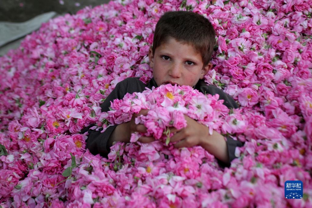 阿富汗楠格哈尔省的玫瑰花从4月份开始进入花期,当地农民开始采摘玫瑰花。