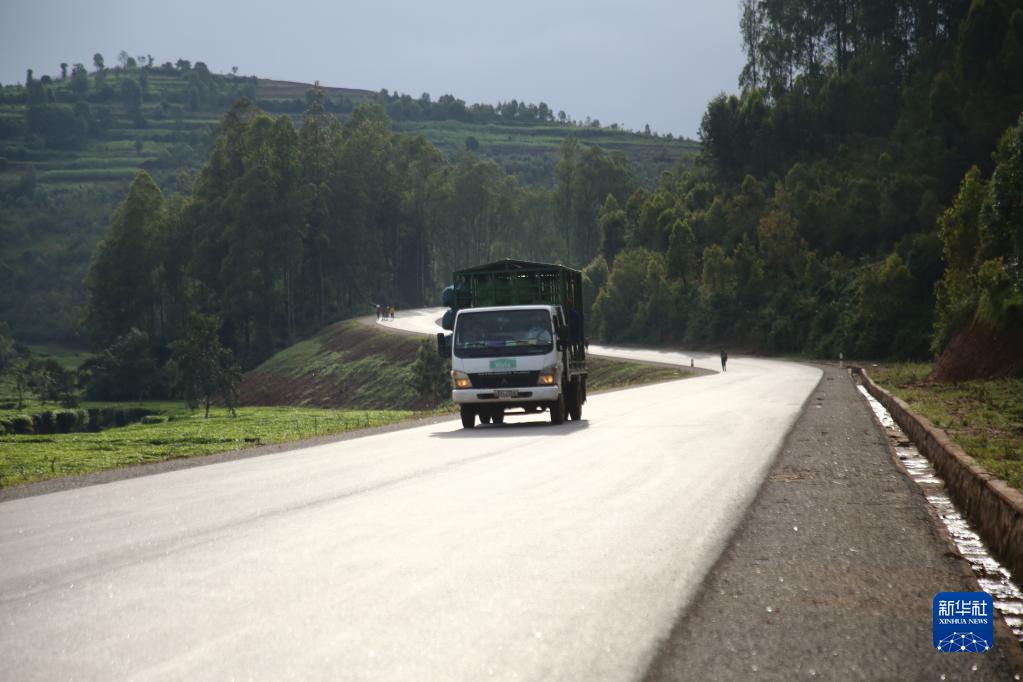 4月21日,一辆货车行驶在卢旺达胡耶市通向基贝霍镇的公路上。