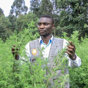 在位于刚果(金)东北部北基伍省的一座种植园里,青蒿浓密,长势喜人。北基伍省是疟疾的重灾区,许多人因染疟离世,疟疾对当地人是噩梦般的存在。为了改变这一状况,卡洛马2017年大学毕业后,回到家乡一头扎进了青蒿种植园,从此这里便成了他生活的重心。当地人亲切地称他为“青蒿博士”。