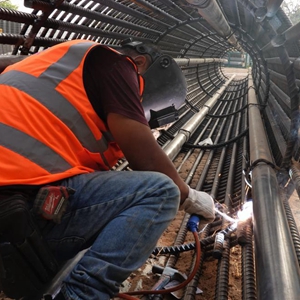 4月24日,工作人员在以色列特拉维夫的轻轨项目现场作业。