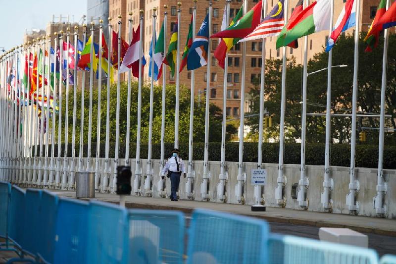 2020年9月22日,一名安保人员在位于纽约的联合国总部内执勤。新华社记者王迎摄