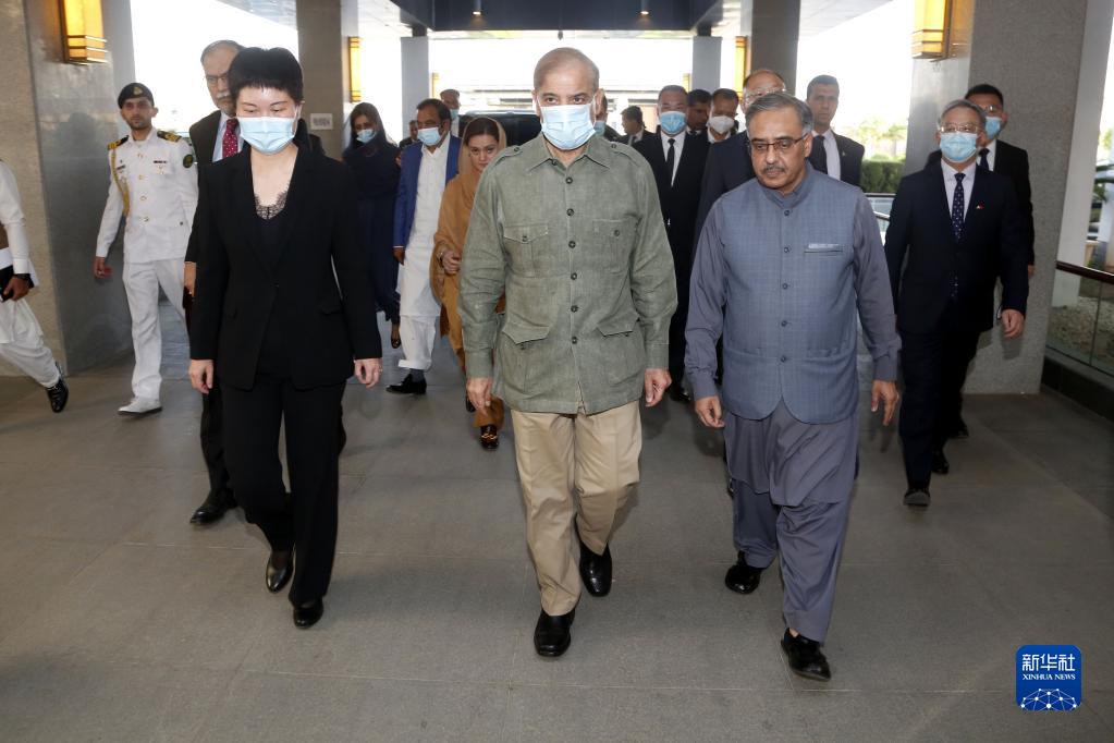4月26日,在巴基斯坦伊斯兰堡,巴基斯坦总理夏巴兹·谢里夫来到中国驻巴基斯坦使馆吊唁中方遇难人员。新华社发(艾哈迈德·卡迈勒摄)