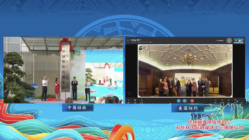 北京时间4月26日上午,桂林国际融媒体中心在广西桂林和美国纽约同步揭牌成立。(图片由主办方提供)