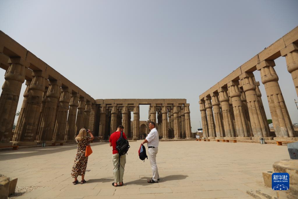 4月26日,游客在埃及卢克索神庙参观。
