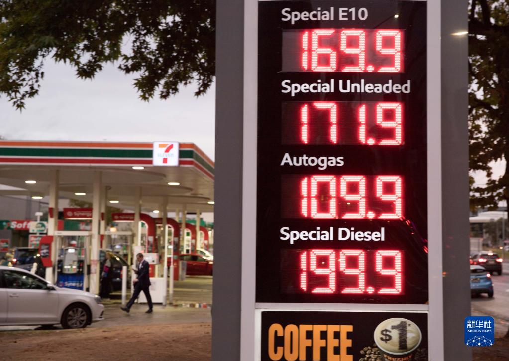 这是4月27日在澳大利亚堪培拉拍摄的加油站油价显示牌。