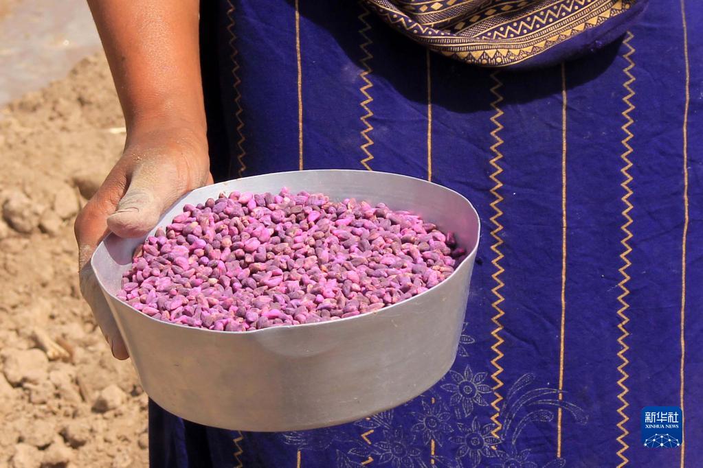 4月27日,在巴基斯坦木尔坦市郊,农民展示棉花种子。新华社发