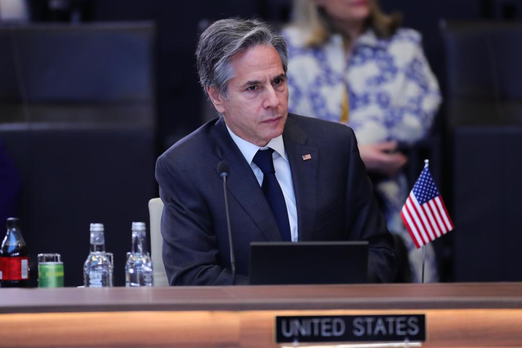 4月7日,在比利时布鲁塞尔的北约总部,美国国务卿布林肯出席北约外长会。新华社记者郑焕松摄