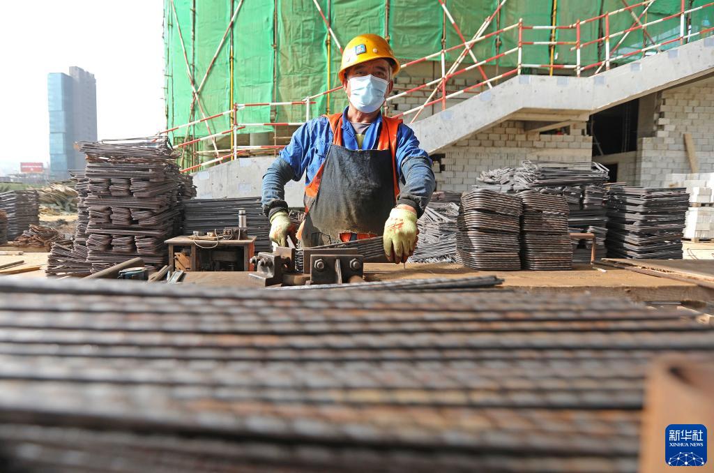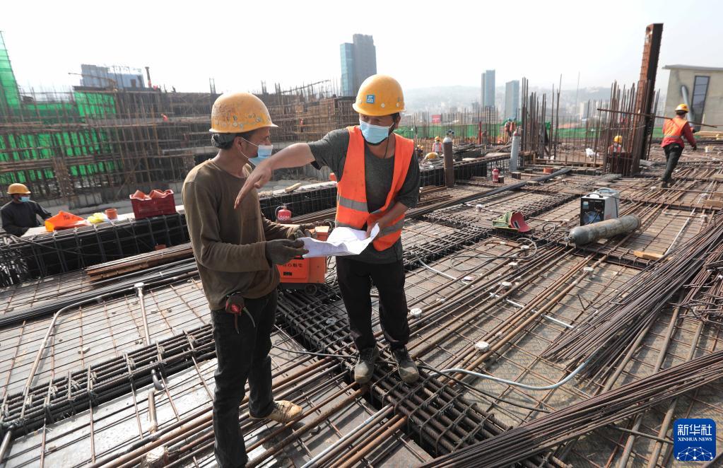 4月27日,在黎巴嫩首都贝鲁特附近的迪巴耶,工人在中国政府援建黎巴嫩国家高等音乐学院项目工地上工作。新华社记者 刘宗亚 摄
