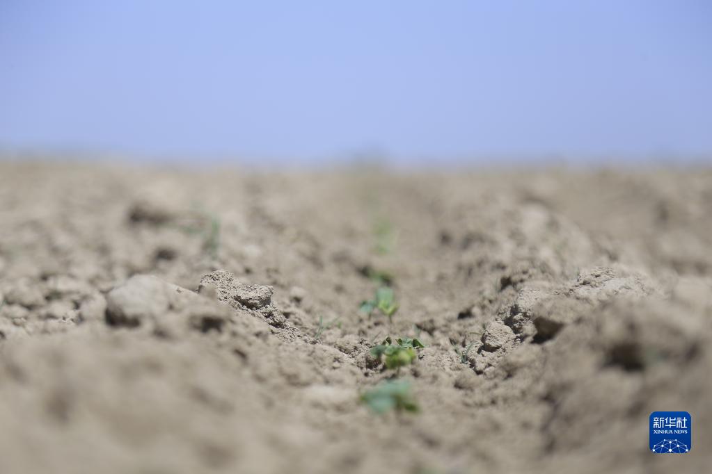 这是4月30日在哈萨克斯坦南部图尔克斯坦州热特赛区“光明之路”农场拍摄的棉花幼苗。