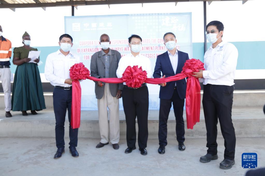 这是4月25日,在博茨瓦纳马哈拉佩,中方代表和当地代表共同为自来水厂移交仪式剪彩。新华社发(策基索·特巴洛摄)