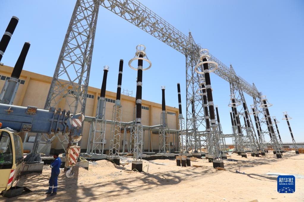 这是4月21日在埃及苏伊士省拍摄的埃克萨迪亚变电站项目建设现场。