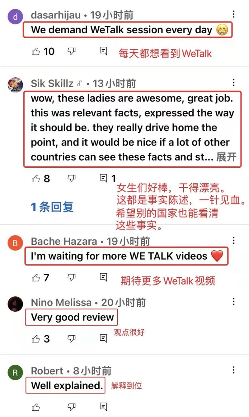 海外网友表示,主持人的点评“一针见血,如果更多国家能够看到这些事实并开始做出更好的决定,就太好了。”还有人直呼“解释到位,观点睿智”。