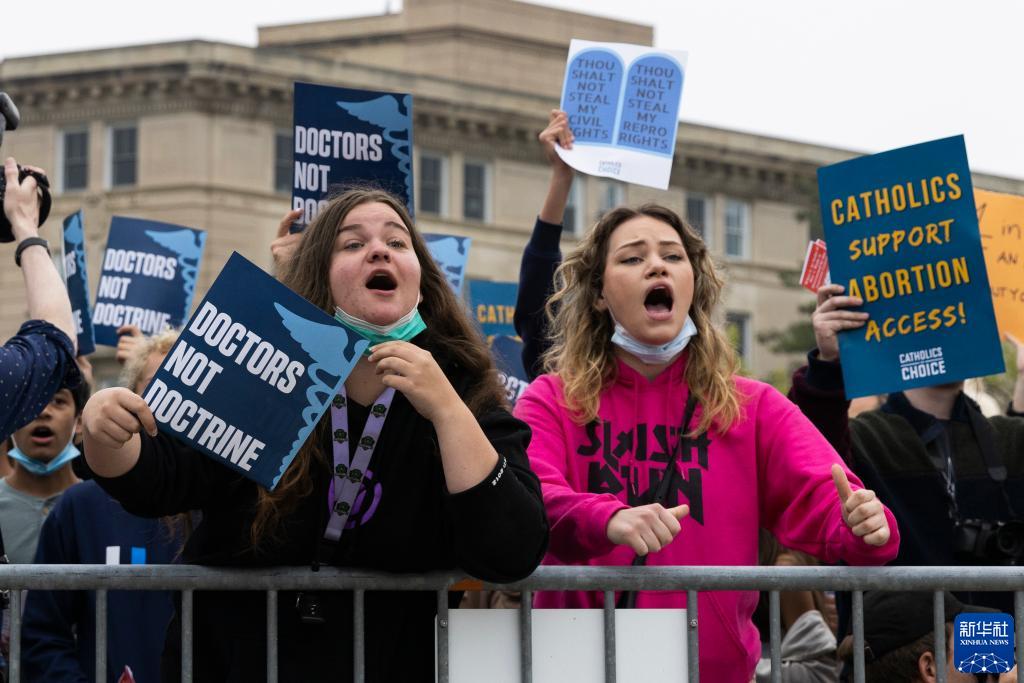 5月3日,在美国华盛顿,支持和反对堕胎权的人们在美国联邦最高法院外集会。新华社发(亚伦摄)